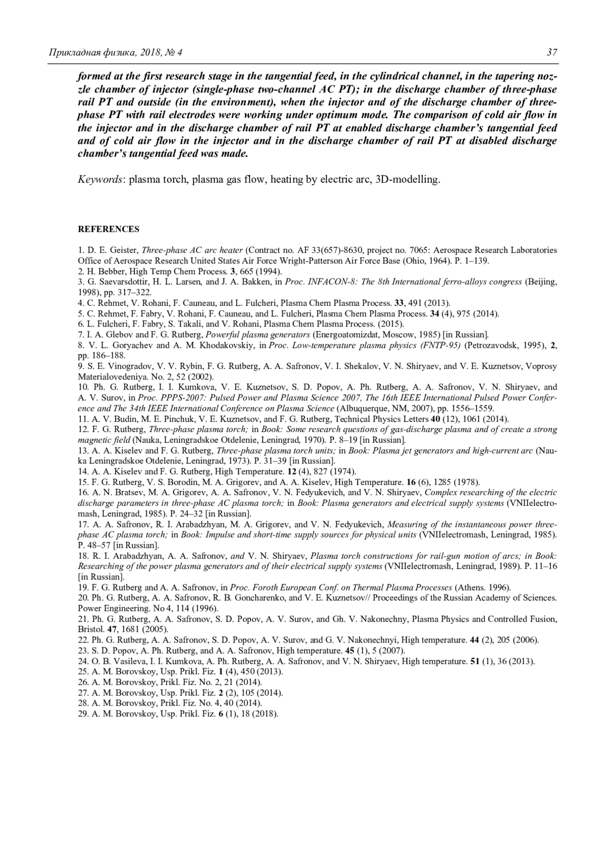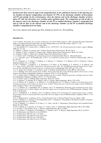 13. Киселёв А. А., Рутберг Ф. Г. Трехфазная плазмотронная установка: в кн. «Генераторы плазменных струй и сильноточные дуги». – Л.: Наука, Ленинградское отделение, 1973. С. 31–39.