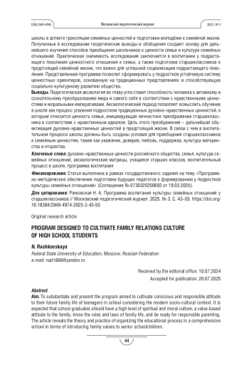 5. Бородина Е. Н. Педагогические условия формирования традиционных духовно-нравственных семейных ценностей у старшеклассников // Современные проблемы науки и образования. 2013. №6. URL: https://science-education.ru/ru/article/view?id=11684 (дата обращения: 07.05.2025). EDN: RVCTEB