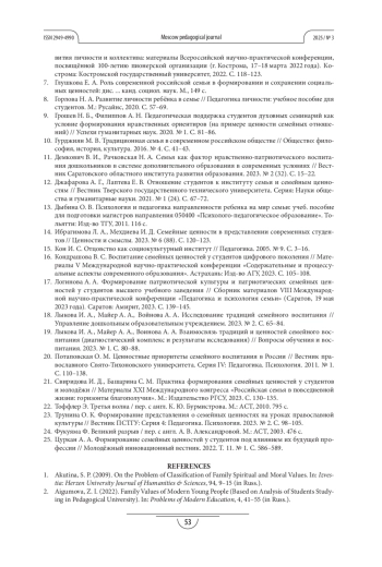 1. Акутина С. П. К проблеме классификации семейных духовно-нравственных ценностей // Известия Российского государственного педагогического университета им. А. И. Герцена. 2009. № 94. С. 9-15. EDN: JWSRET