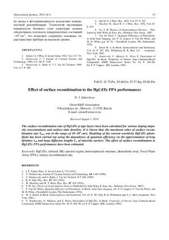Яковлева Н. И. Влияние поверхностной рекомбинации на параметры фотодиодов из полупроводниковых структур HgCdTe 49