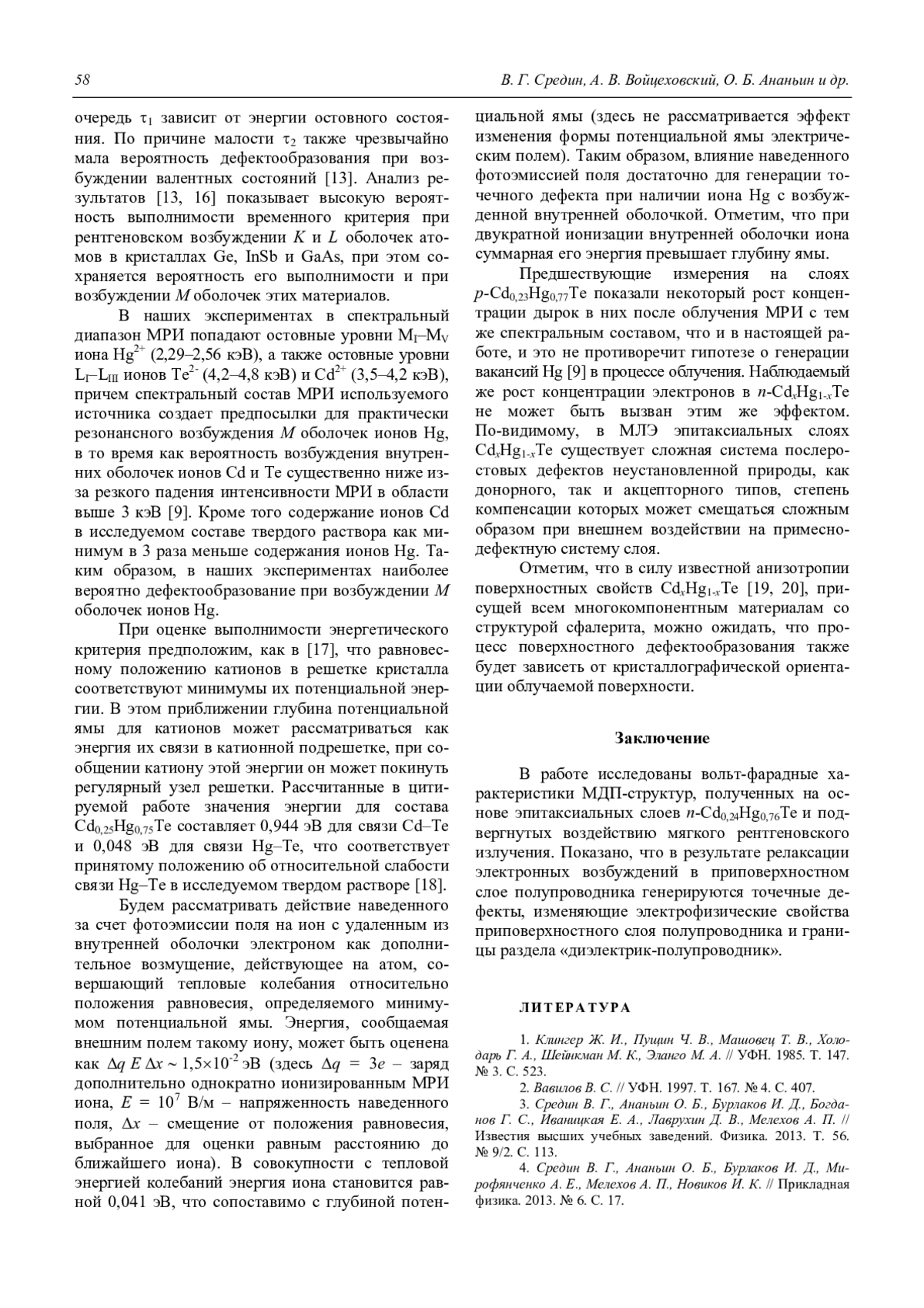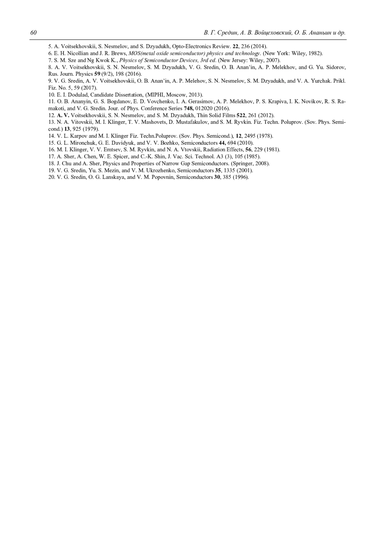9 Средин В. Г., Войцеховский А. В., Ананьин О. Б., Мелехов А. П., Несмелов С. Н., Дзядух С. М., Юрчак В. А. // Прикладная физика. 2017. № 5. С. 59.