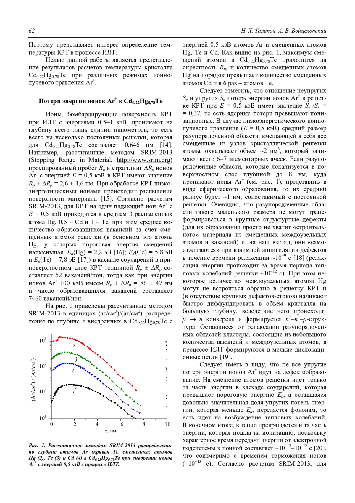 N. Kh. Talipov and A. V. Voitsekhovskii Influence of the ion etching modes on radiation heating process of CdxHg1-xTe 61