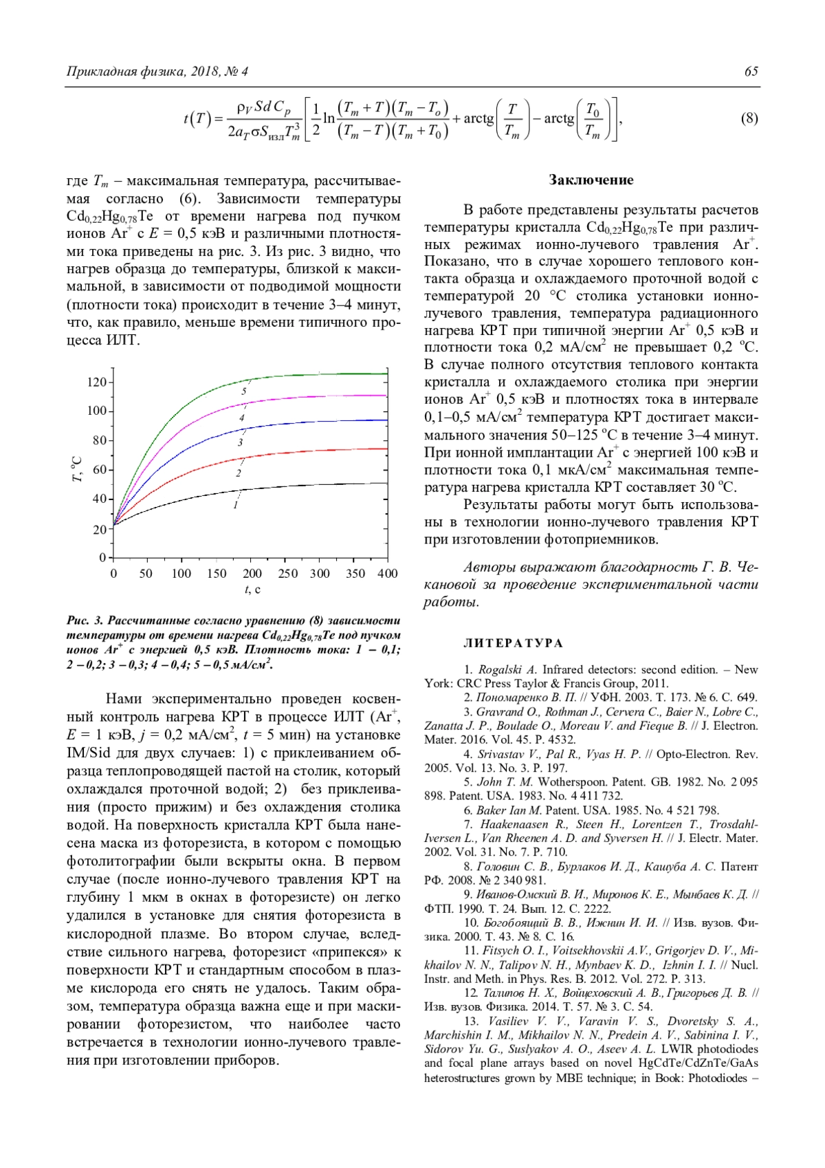 Талипов Н. Х., Войцеховский А. В. Влияние режимов ионно-лучевого травления на процесс радиационного нагрева CdxHg1-xTe 61
