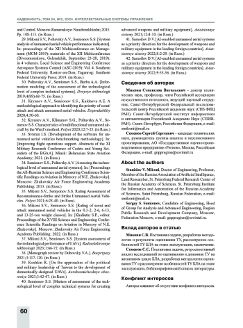 35. Микони С.В., Семенов С.С. Оценивание рейтинга разведывательно-ударных и ударных беспилотных летательных аппаратов в классах массой 0,3-2, 2-6, 6-13, 13-25 т / Материалы XVIII Научно-технической конференции «Научные чтения по авиации, посвященные памяти Н.Е. Жуковского». Сборник докладов под ред. С.П. Халютина. М.: Издательский дом Академии имени Н.Е. Жуковского, 2022. 420 с.