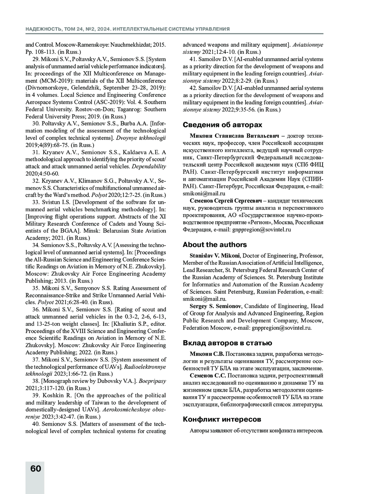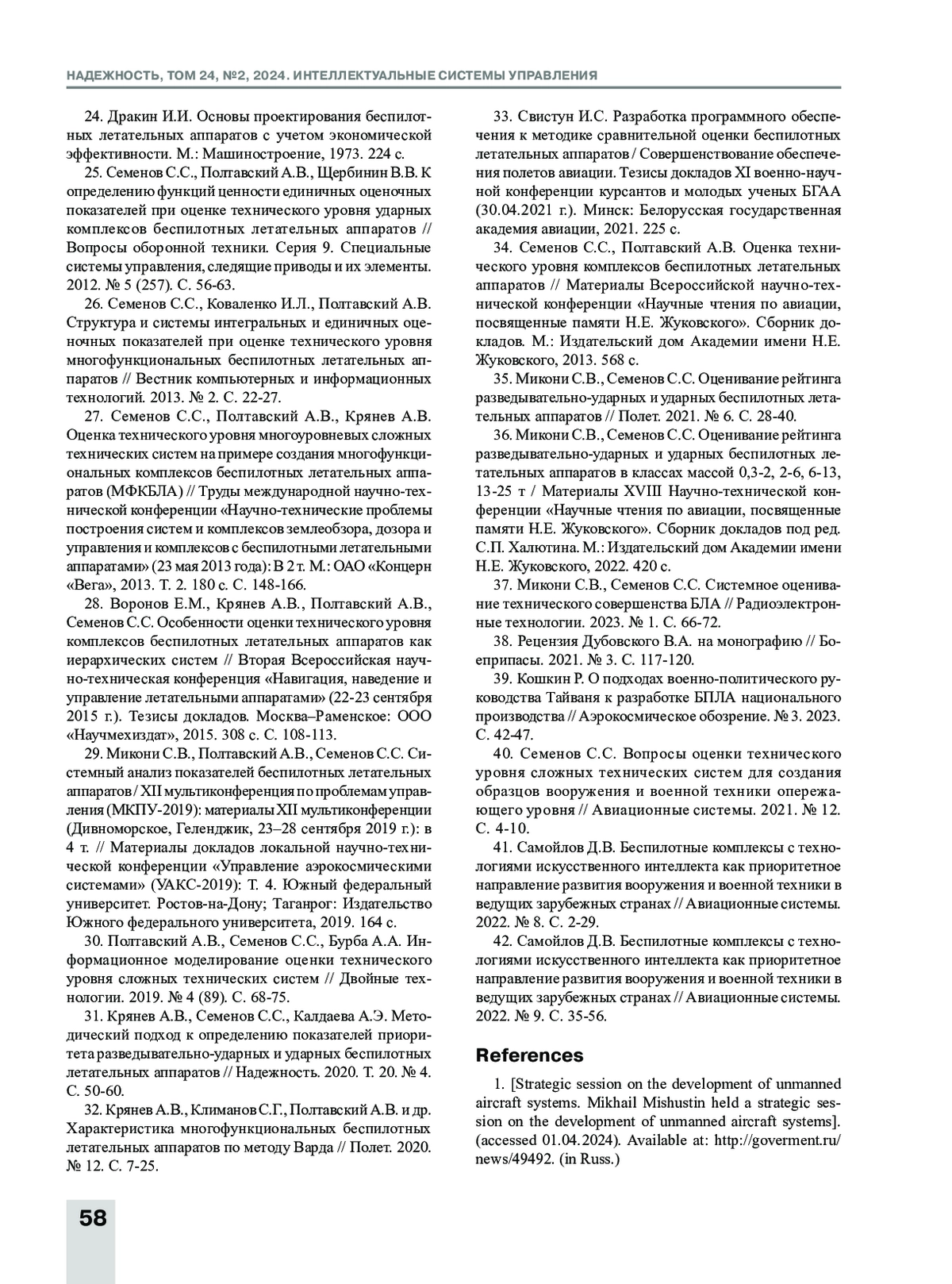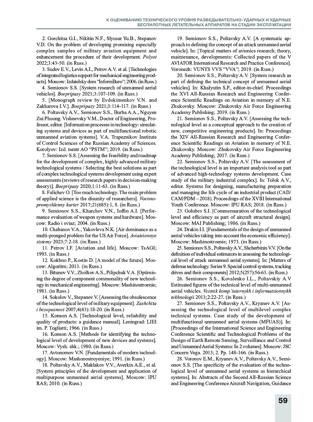 34. Микони С.В., Семенов С.С. Оценивание рейтинга разведывательно-ударных и ударных беспилотных летательных аппаратов // Полет. 2021. № 6. С. 28-40.