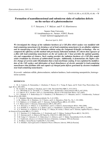 Стецюра С. В., Маляр И. В., Харитонова П. Г. Формирование наноразмерных и субмикронных стоков радиационных дефектов на поверхности фотопроводника 68