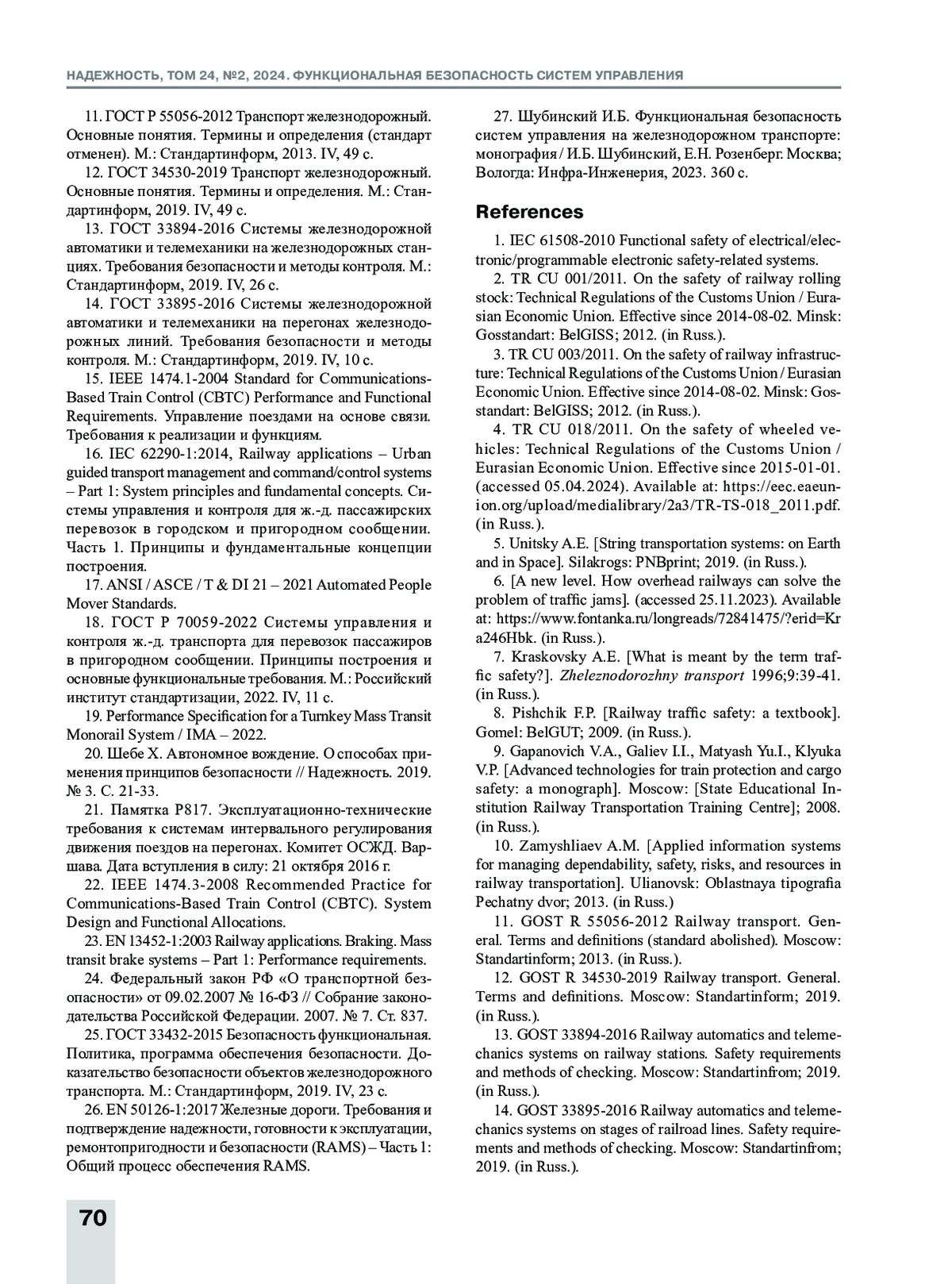 27. Шубинский И.Б. Функциональная безопасность систем управления на железнодорожном транспорте: монография / И.Б. Шубинский, Е.Н. Розенберг. Москва; Вологда: Инфра-Инженерия, 2023. 360 c.