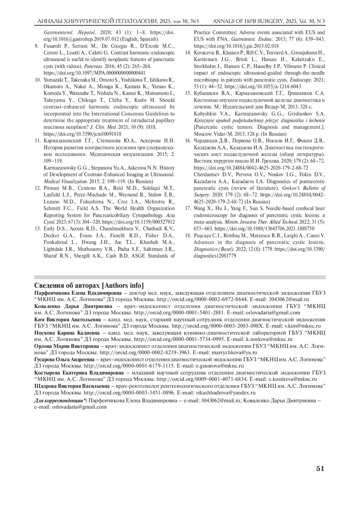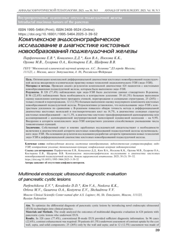 3. Wesali S., Demir M.A., Verbeke C.S., Andersson M., Bratlie S.O., Sadik R. EUS is accurate in characterizing pancreatic cystic lesions; a prospective comparison with crosssectional imaging in resected cases. Surg. Endosc. 2021; 35 (12): 6650-6659. DOI: 10.1007/s00464-020-08166-3