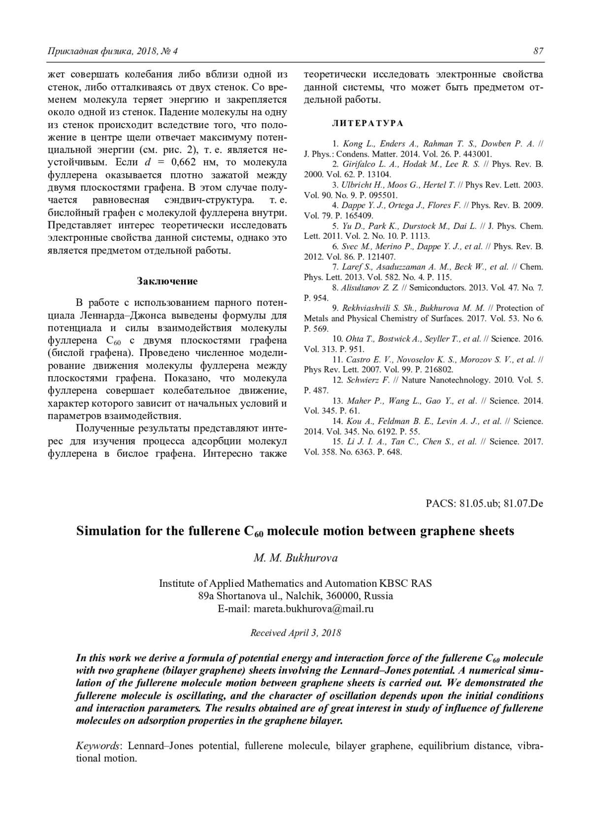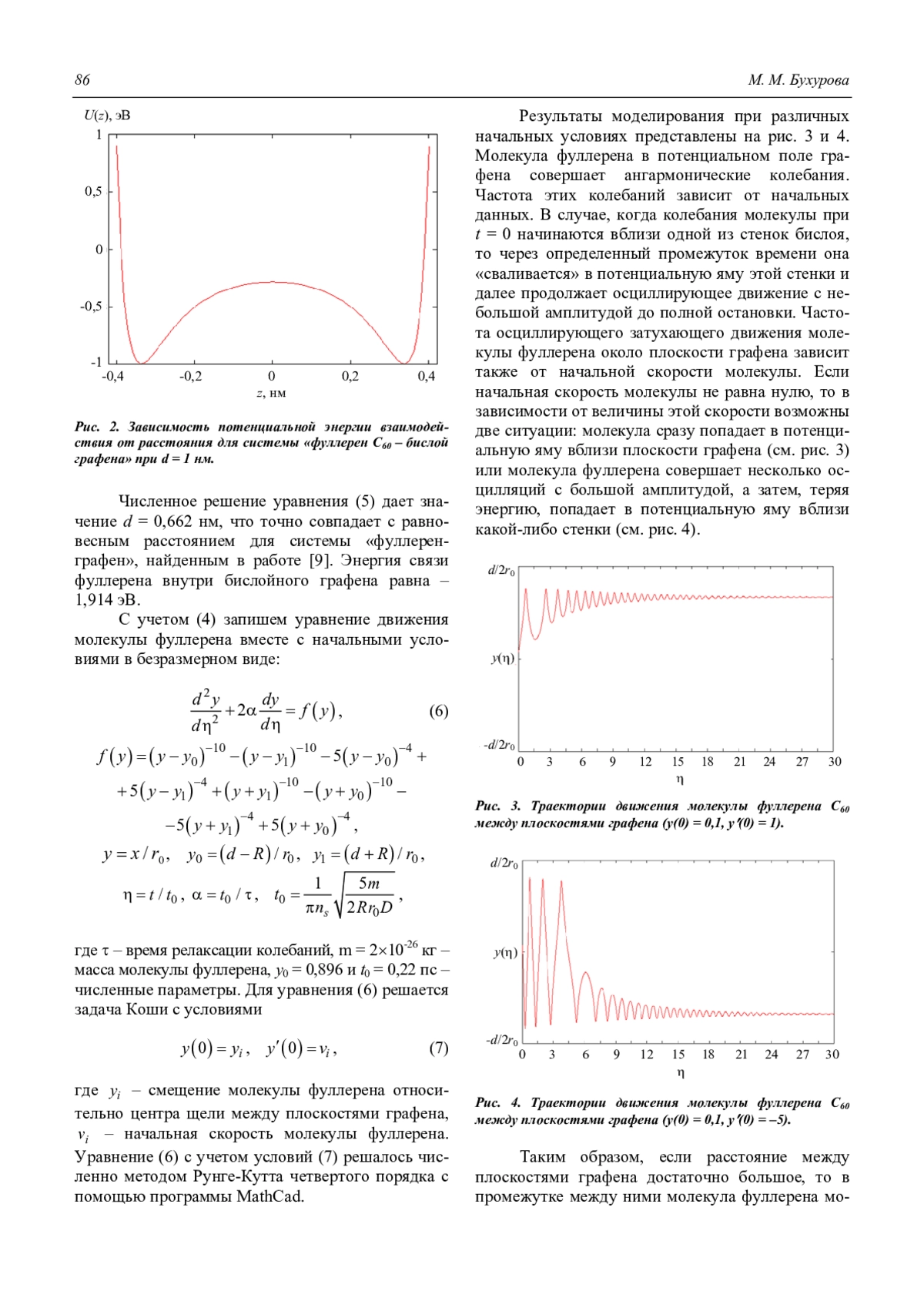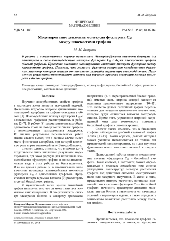 M. М. Bukhurova Simulation for the fullerene C60 molecule motion between graphene sheets 84
