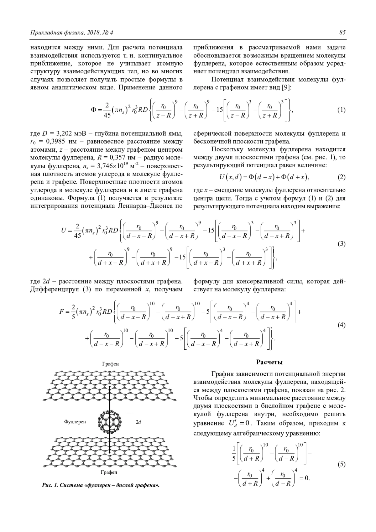 Бухурова М. М. Моделирование движения молекулы фуллерена С60 между плоскостями графена 84