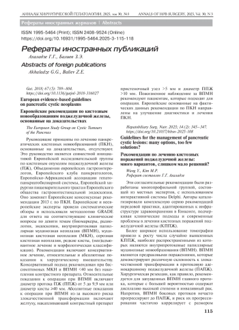 Заключение. Кистозные опухоли поджелудочной железы представляют собой новообразования с вариабельным биологическим поведением, что требует дифференцированного подхода к диагностике и лечению.
