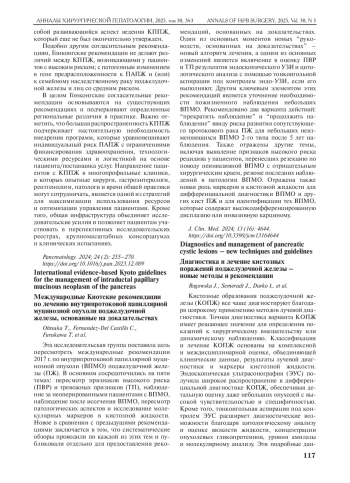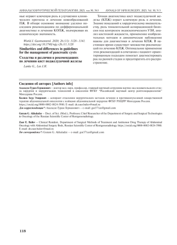 Уважаемые коллеги! По решению и при всесторонней поддержке редакции в очередном номере “Анналов хирургической гепатологии” нами подготовлен раздел, посвященный диагностике и лечению пациентов с кистозными новообразованиями поджелудочной железы. Актуальность тематики, на наш взгляд, очевидна. Улучшение доступности инструментальных методов диагностики, таких как КТ и МРТ, приводит к значительному росту выявляемости кистозных неоплазий поджелудочной железы. При этом ввиду значительной разнородности семиотики и сложностей определения прогноза при различных видах кистозных образований в профессиональном сообществе происходит множество дискуссий в части определения тактических подходов к лечению таких больных. Существующие рекомендации зачастую предлагают различную тактику, разные базовые критерии для ее выбора, что затрудняет их использование на практике. Особые сложности возникают, когда такие пациенты проходят лечение и наблюдаются в общесоматических не узкоспециализированных медицинских учреждениях.