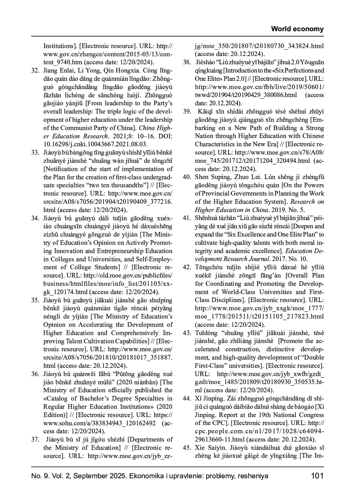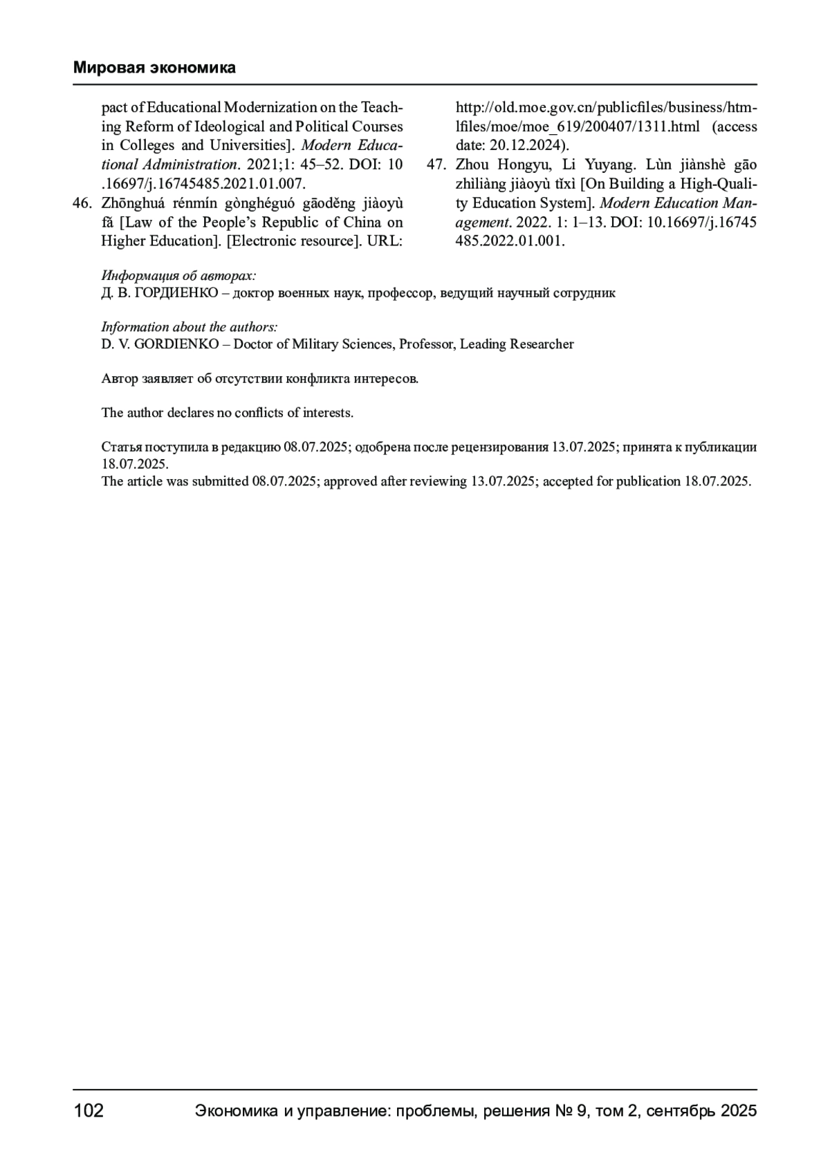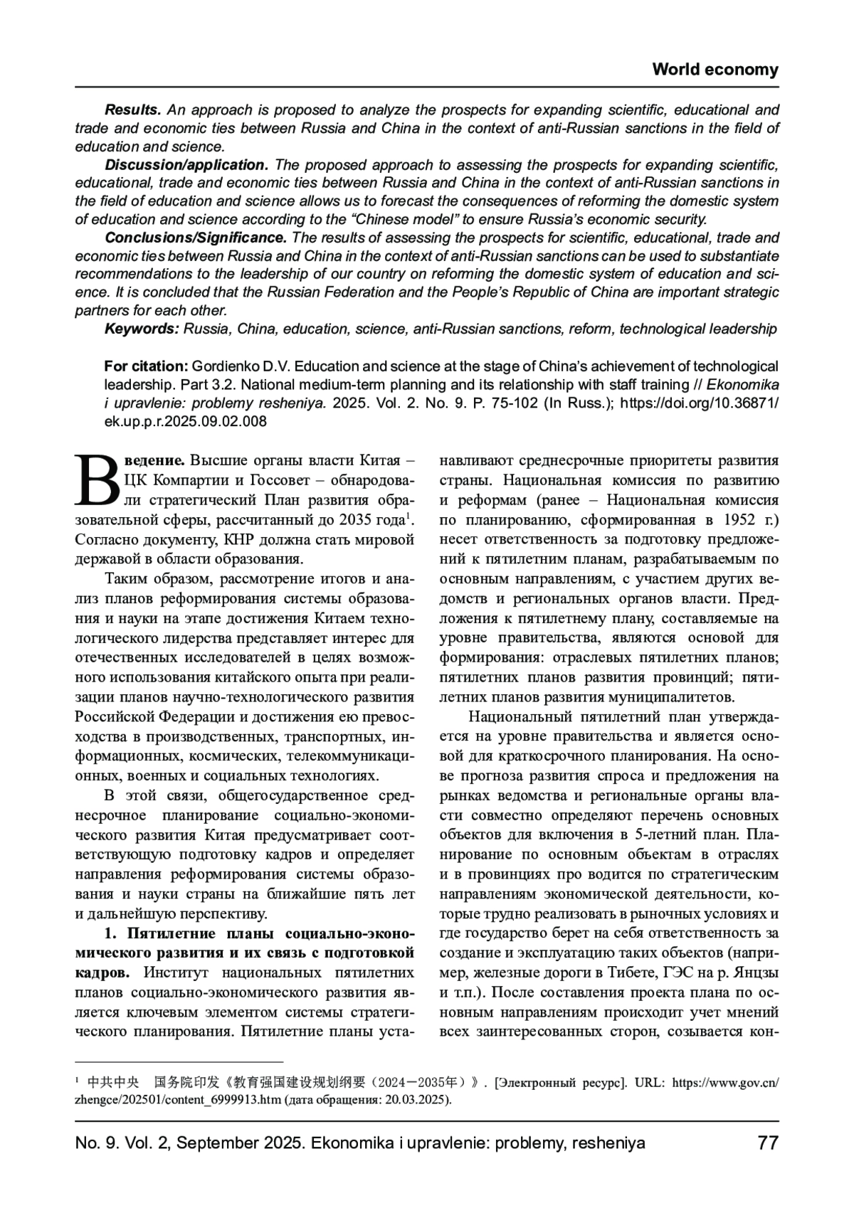 ГОРДИЕНКО Д. В. ОБРАЗОВАНИЕ И НАУКА НА ЭТАПЕ ДОСТИЖЕНИЯ КИТАЕМ ТЕХНОЛОГИЧЕСКОГО ЛИДЕРСТВА. ЧАСТЬ 3.2. ОБЩЕГОСУДАРСТВЕННОЕ СРЕДНЕСРОЧНОЕ ПЛАНИРОВАНИЕ И ЕГО СВЯЗЬ С ПОДГОТОВКОЙ КАДРОВ // ЭКОНОМИКА И УПРАВЛЕНИЕ: ПРОБЛЕМЫ, РЕШЕНИЯ. 2025. ТОМ 2 № 9