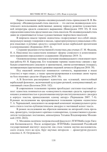 8. Корниенко Е. Р. Идиолект и идиостиль: к вопросу о соотнесении понятий // Филология: научные исследования. 2019. № 1. С. 2-3. [Kornienko, Elena R. (2019) Idiolekt i idiostil’: k voprosu o sootnesenii ponjatij (Idiolect and Idiostyle: on the Issue of Correlation of Concepts). Philology: Scientific Research, 1, 2-3. (In Russian)]. EDN: HYRFPF