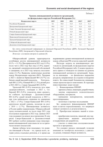 Ключевые фразы: инновационный потенциал региона, инновационная активность, устойчивое региональное развитие, инновационная среда, инновационная стратегия