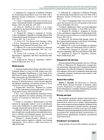 4. Yu C., Lee J., Munro-Stasiuk M. Extensions to leastcost path algorithms for roadway planning // International Journal of Geographical Information Science - GIS. 2003. Vol. 17.