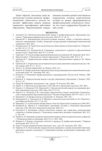 8. Громкова М. Т. Андрагогика как методологическая основа управленческой деятельности // Новые знания. 2024. № 1. С. 10-13.