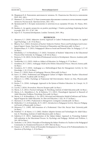 2. Блинова Ю. Л. Формирование субъектной позиции педагога: теория и психолого-акмеологическое сопровождение. Казань: Татарский государственный гуманитарно-педагогический университет, 2022. 204 с.
