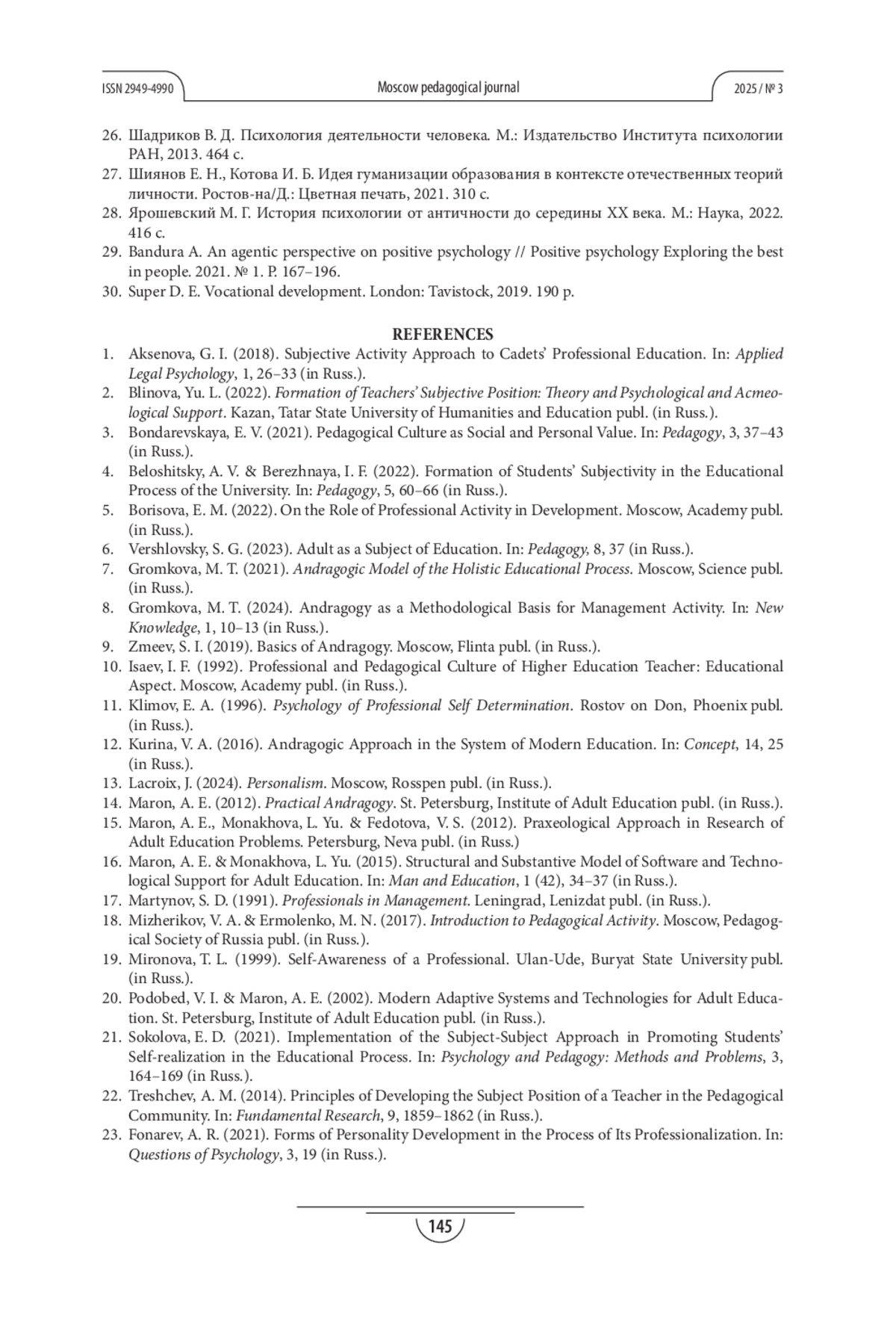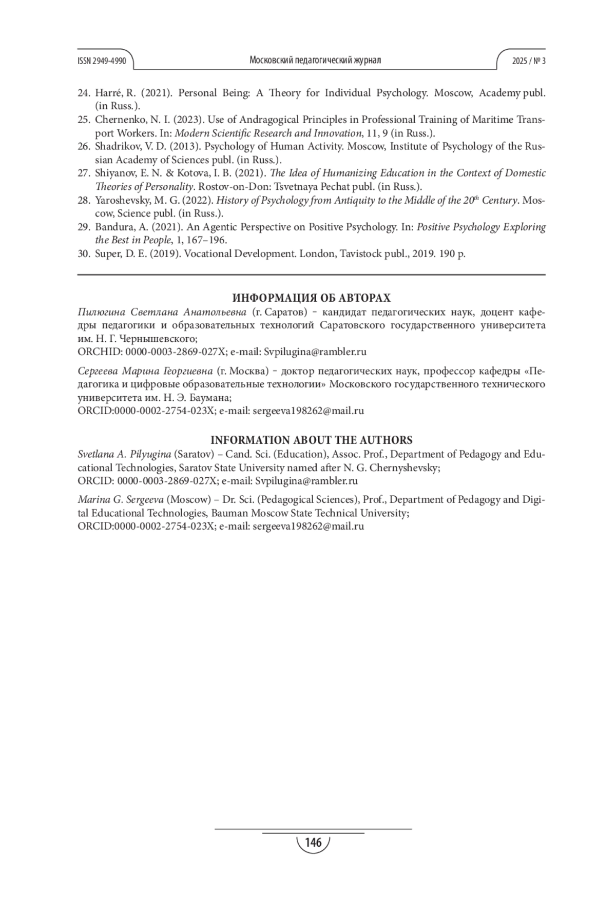 25. Черненко Н. И. Использование андрагогических принципов в профессиональной подготовке работников морского транспорта // Современные научные исследования и инновации. 2023. № 11. С. 9.