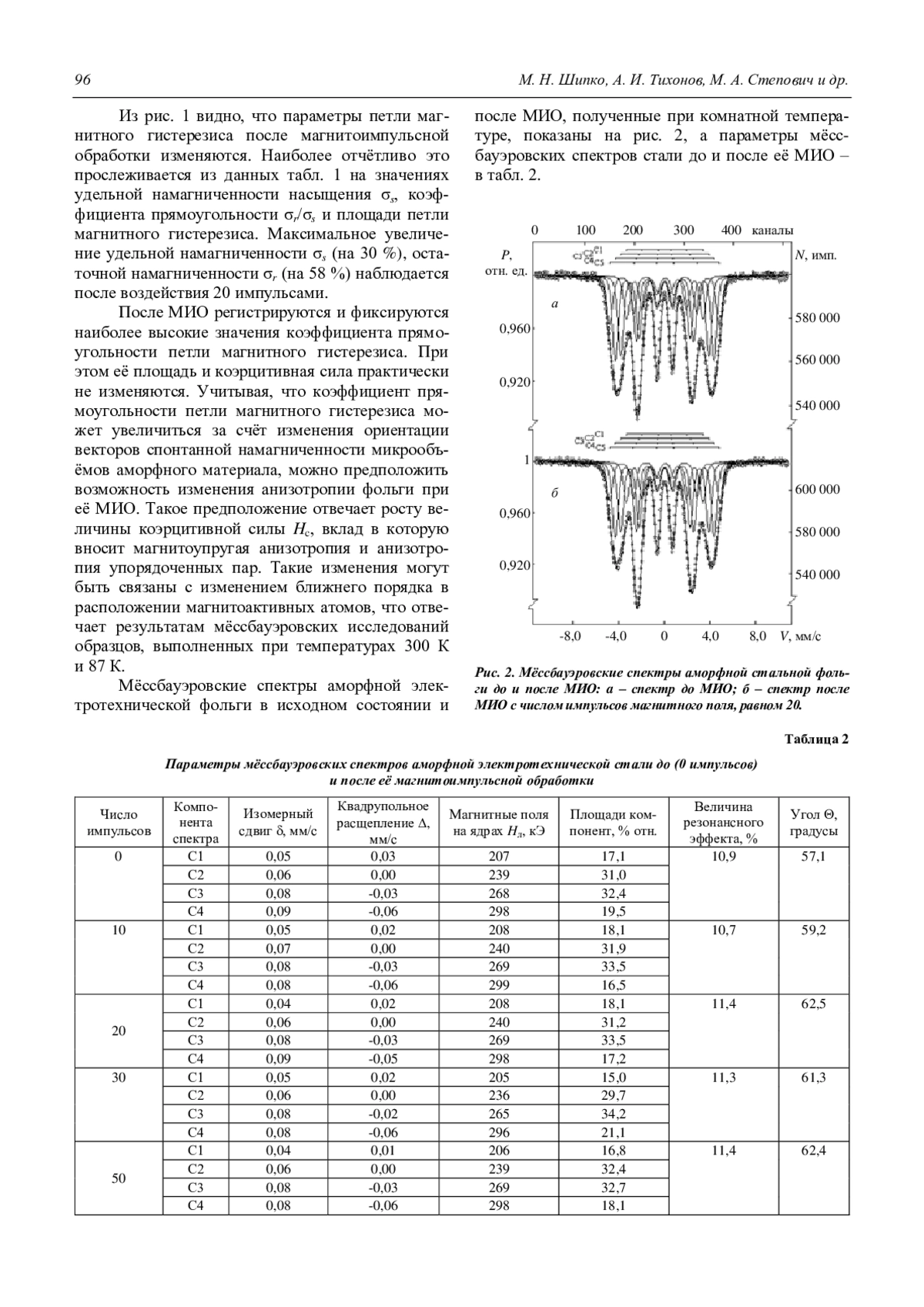 Шипко М. Н., Тихонов А. И., Степович М. А., Коровушкин В. В., Савченко Е. С., Корнев И. А. Влияние магнитоимпульсной обработки на магнитные свойства аморфной электротехнической стали 94