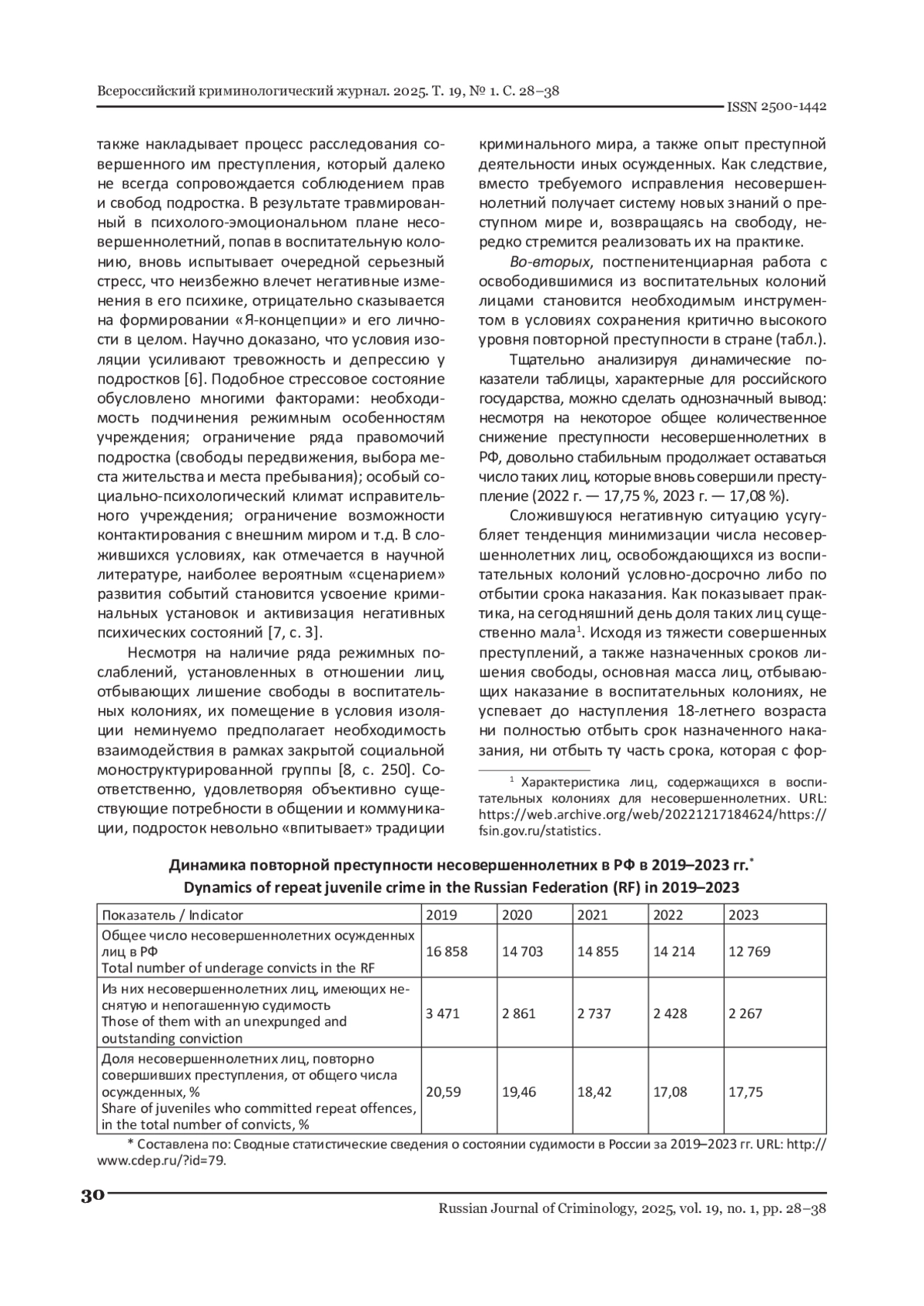 Наиболее эффективными средствами борьбы с преступностью несовершеннолетних признаются частнопревентивные меры, адресованные непосредственно к данной социальной уязвимости категории населения. В статье обоснована необходимость налаживания постпенитенциарной работы, реализуемой в отношении освободительных изтельных воспитателей колоний лиц. Предметом исследования серьезных проблем сохранения девиантного и делинквентного поведения у подростков, покинувших место лишения свободы и нужды в особом социально-психологическом, правовом и педагогическом сопровождении со стороны государства. Специфика географических и последствий особенностей несовершеннолетних королевств, сохранение стабильных показателей их повторяемости преступности, а также слабый уровень организации ресоциализационной работы в обеспечении необходимости создания в РФ специализированных профильных центров реабилитации для лиц, освободившихся из воспитательных колоний. Проведенный сравнительный анализ позволяет сделать вывод о том, что в ряде случаев оказываемая странами всесторонняя помощь подросткам, отбывшим свободу свободы, играет приоритетную роль в особой важности, которую лидер трансформирует и в российскую правовую систему. В целях грамотного построения комплексной предупредительной работы на теоретическом и эмпирическом уровне доказана первоначательность временного надзора за лишением свободы подростками посредством применения системы электронных браслетов, обладающих мощным превентивным потенциалом. Авторами отмечается, что активизация адаптационной работы в рассматриваемом направлении позволяет принять федеральный закон «О ресоциализации и социальной адаптации лиц, освободившихся из воспитательных колоний». В статье разработана примерная структура предлагаемого нормативного акта. Делается вывод о приоритетности комбинированного подхода к применению предложенных мер по оптимизации реабилитационной и ресоциализационной работы с постепенной ликвидацией, отбывшей явление в виде лишения свободы.