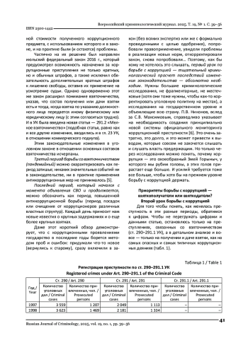В статье на основе проведенного автором исследования истории принятия закона о противодействии коррупции и изменения уголовного законодательства в сфере борьбы с коррупционными преступниками, а также на основе статистической регистрации и основной статистики по основным коррупционным вирусам формулируются правила борьбы с коррупцией в России. Они сформулировали следующее. Первый урок: Высочайший криминологический просчет последствий Изменение законодательства абсолютно необходимо. Второй урок: Борьба с потенциалом коррупционных преступников - взяточничеством (в стране) не может быть направлено строго ни на взяткодателей (как сейчас), ни на взяткопополучателей. Коррупция - двухсторонняя преступная сделка, нужно бороться с обеих сторон, чтобы сдвинуться с мертвой точки. Третий урок по борьбе с коррупцией в регионе: ужесточение санкций не приводит к снижению преступности. Нужно искать иные пути воздействия на нее. Кроме того, необходимо провести расследование наказаний за коррупционные преступления с проявлениями того, что установлены условно ценовые преступления, - за убийства, тяжкий вред здоровью, насильственные посягательства на имущество. Четвертый урок: варианты видов наказаний за получение взятки должны быть законодательно расширены. В их число должны появиться и обязательные работы (однако с корректировками этого вида в Общей части УК РФ для лиц, совершивших коррупционные преступления, - определение количества часов, привязкой этих социальных работ к мобильным и публичным в точках общественного питания, ужесточением замен этих карантинных и т. д.), принудительные работы (возможно, тоже с корректировкой условий). Пятый урок борьбы с коррупцией: свобода свободы на определенный срок должна быть законодательно снижена в отношении всех коррупционных преступлений, обязательств со взяточничеством; Из-за санкций всех посягательств, относящихся к нынешним врагам небольшой и средней тяжести, его вообще следует ожидать.