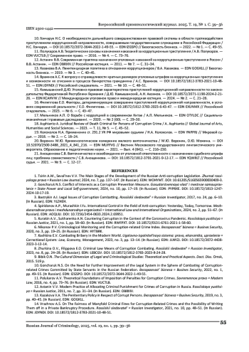 15. Камышанский Д.Ю. Уголовно-правовая характеристика последствий коррупционной направленности в законодательстве Федеративной Республики Германия / Д.Ю. Камышанский, А.Н. Аксенов. // Международное уголовное право и международная юстиция. - 2024. - № 2. - С. 21-26. DOI: 10.18572/2071-1190-2024-2-21-26 EDN: KCAHVW
