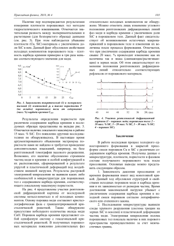 Ключевые фразы: диаграмма прессования, микроструктура, плотность, пористость, ФАЗОВЫЙ СОСТАВ, МЕДЬ, карбид кремния