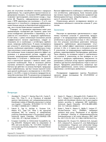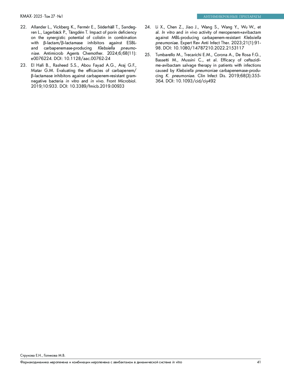 22. Allander L., Vickberg K., Fermér E., Söderhäll T., Sandegren L., Lagerbäck P., Tängdén T. Impact of porin deficiency on the synergistic potential of colistin in combination with β-lactam/β-lactamase inhibitors against ESBLand carbapenemase-producing Klebsiella pneumoniae. Antimicrob Agents Chemother. 2024;6;68(11): e0076224. DOI: 10.1128/aac.00762-24