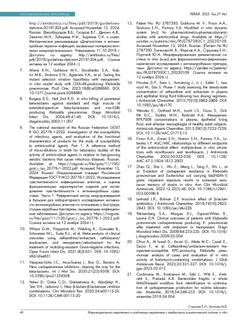 7. Alieva K.N., Golikova M.V., Dovzhenko S.A., Kobrin M.B., Strukova E.N., Ageevets V.A., et al. Testing the mutant selection window hypothesis with meropenem: in vitro model study with OXA-48-producing Klebsiella pneumoniae. PLoS One. 2023;18(8):e0288660. DOI: 10.1371/journal.pone.0288660