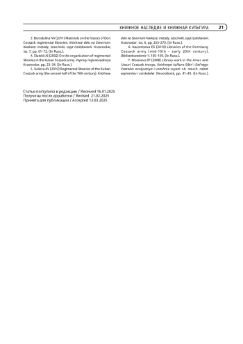 3. Бородулина Н. В. Материалы к истории донских казачьих полковых библиотек // Книжное дело на Северном Кавказе: методы, источники, опыт исследований. Краснодар, 2011. Вып. 7. С. 61-72.