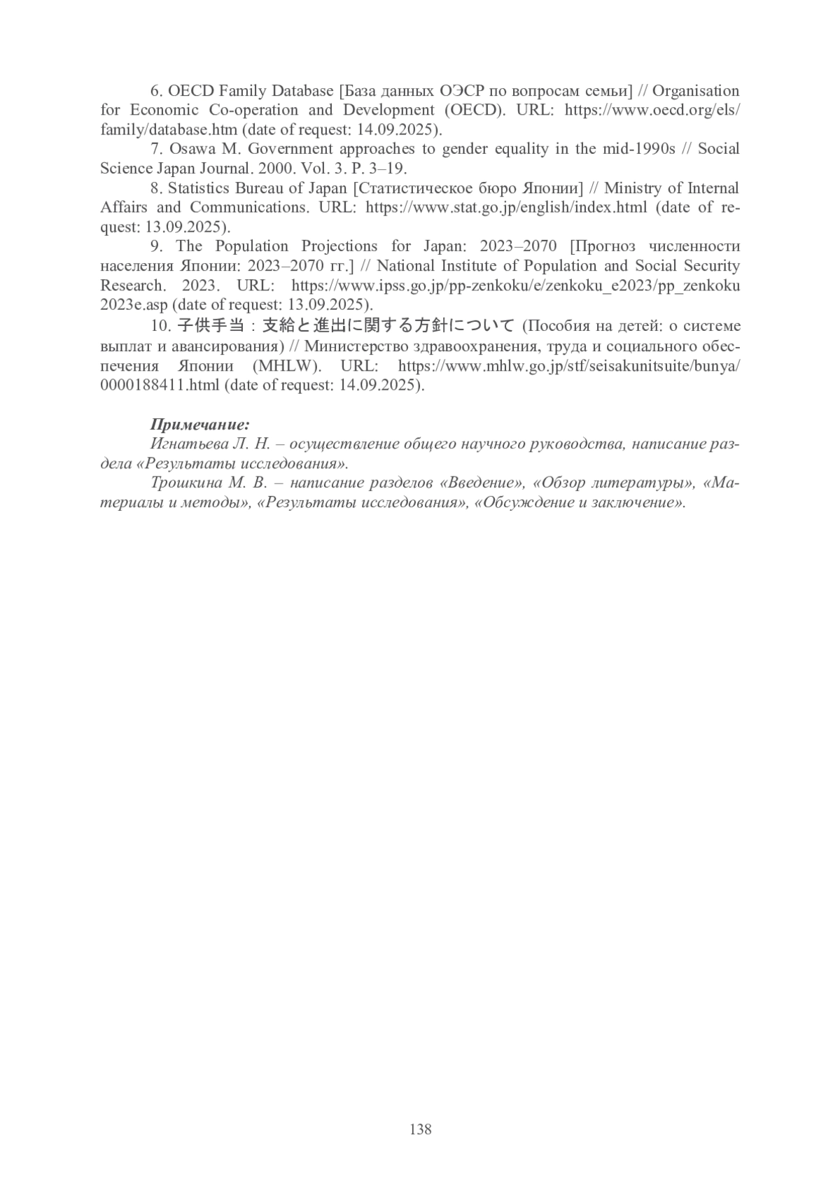 ИГНАТЬЕВА Л. Н., ТРОШКИНА М.В. СОВРЕМЕННАЯ СЕМЕЙНАЯ ПОЛИТИКА ЯПОНИИ // ТЕХНОЛОГИИ СОЦИАЛЬНО-ГУМАНИТАРНЫХ ИССЛЕДОВАНИЙ. 2025. № 3 (11)