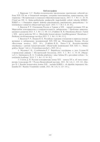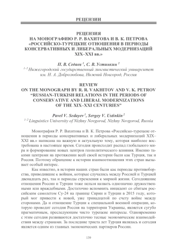 СЕДАЕВ П. В., УСТИНКИН С. В. РЕЦЕНЗИЯ НА МОНОГРАФИЮ Р. Р. ВАХИТОВА И В. К. ПЕТРОВА «РОССИЙСКО-ТУРЕЦКИЕ ОТНОШЕНИЯ В ПЕРИОДЫ КОНСЕРВАТИВНЫХ И ЛИБЕРАЛЬНЫХ МОДЕРНИЗАЦИЙ XIX-XXI ВВ.» // ТЕХНОЛОГИИ СОЦИАЛЬНО-ГУМАНИТАРНЫХ ИССЛЕДОВАНИЙ. 2025. № 3 (11)