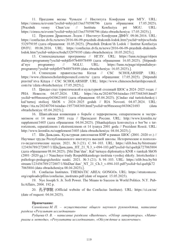 3. Дун Хуэй. Роль институтов Конфуция в распространении китайской традиционной культуры // Этносоциум. 2022. № 10 (172). С. 72-77.