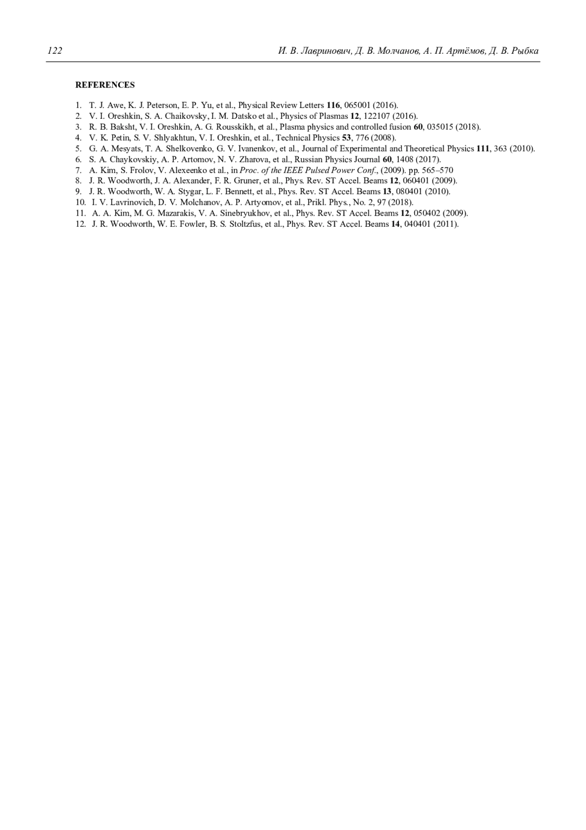 6. Чайковский С. А., Артёмов А. П., Жарова Н. В., Жигалин А. С., Лавринович И. В., Орешкин В. И., Ратахин Н. А., Русских А. Г., Федюнин А. В., Федущак В. Ф., Эрфорт А. А. // Известия Вузов. Физика. 2017. Т. 60. № 8. С. 131.