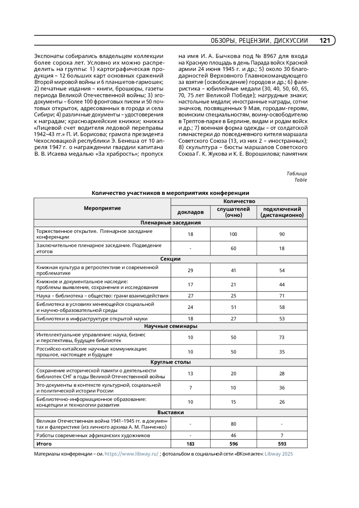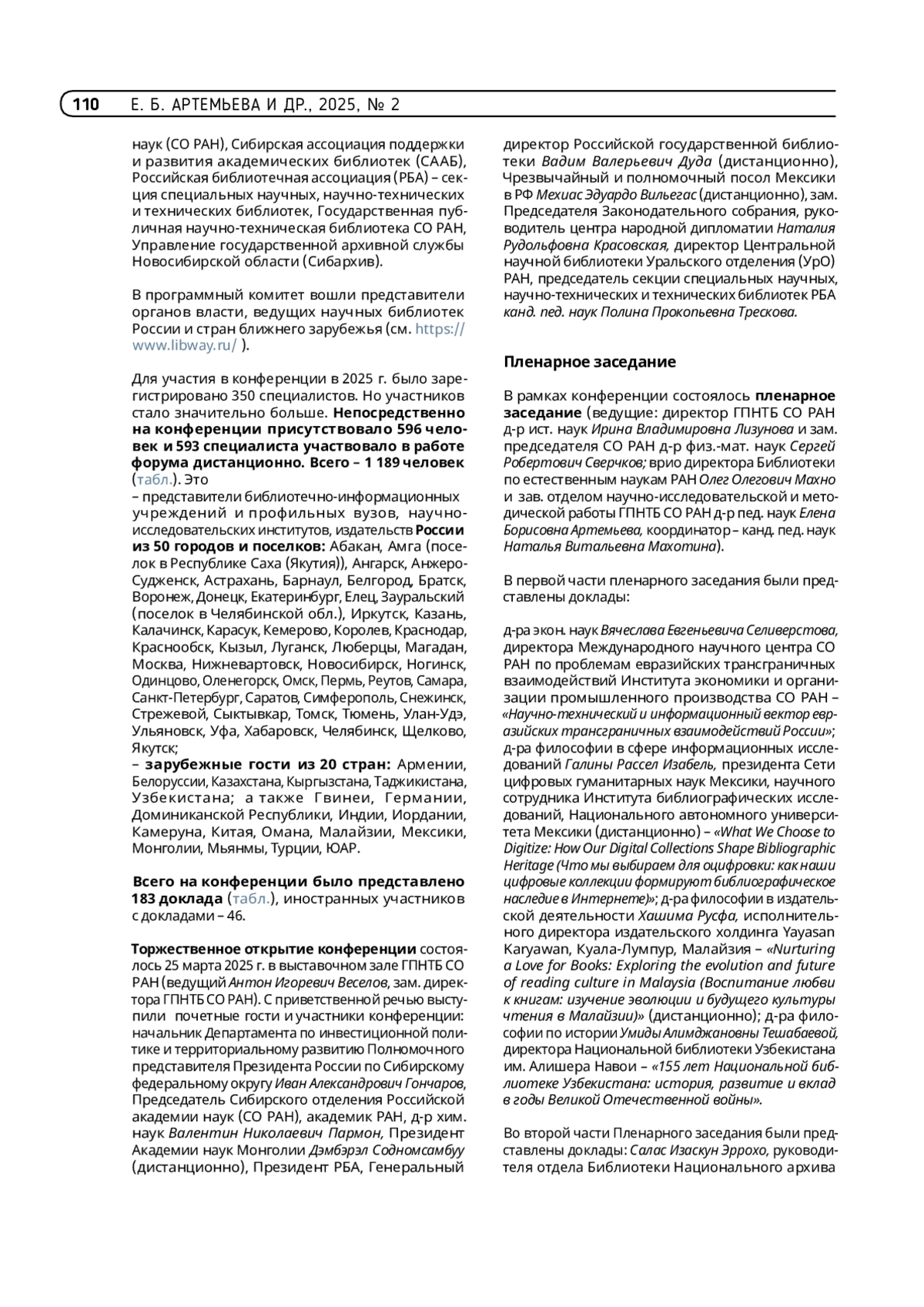 Цель статьи – представить информацию о международной научно-практической конференции «Наука, технологии, информация в библиотеках (Libway-2025)», прошедшей в ГПНТБ СО РАН 24–28 марта 2025 г., охарактеризовать мероприятия с кратким обзором докладов и сообщений.