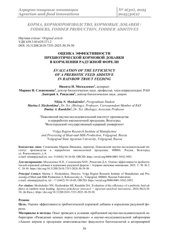 Цель. Оценка эффективности пребиотической кормовой добавки в кормлении радужной форели.