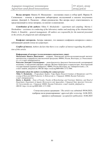 3. Ртищев С.С. Оценка качества радужной форели, реализуемой на потребительском рынке // Вестник КрасГАУ. 2024. № 12 (213). С. 142-147. DOI: 10.36718/1819-4036-2024-12-142-147