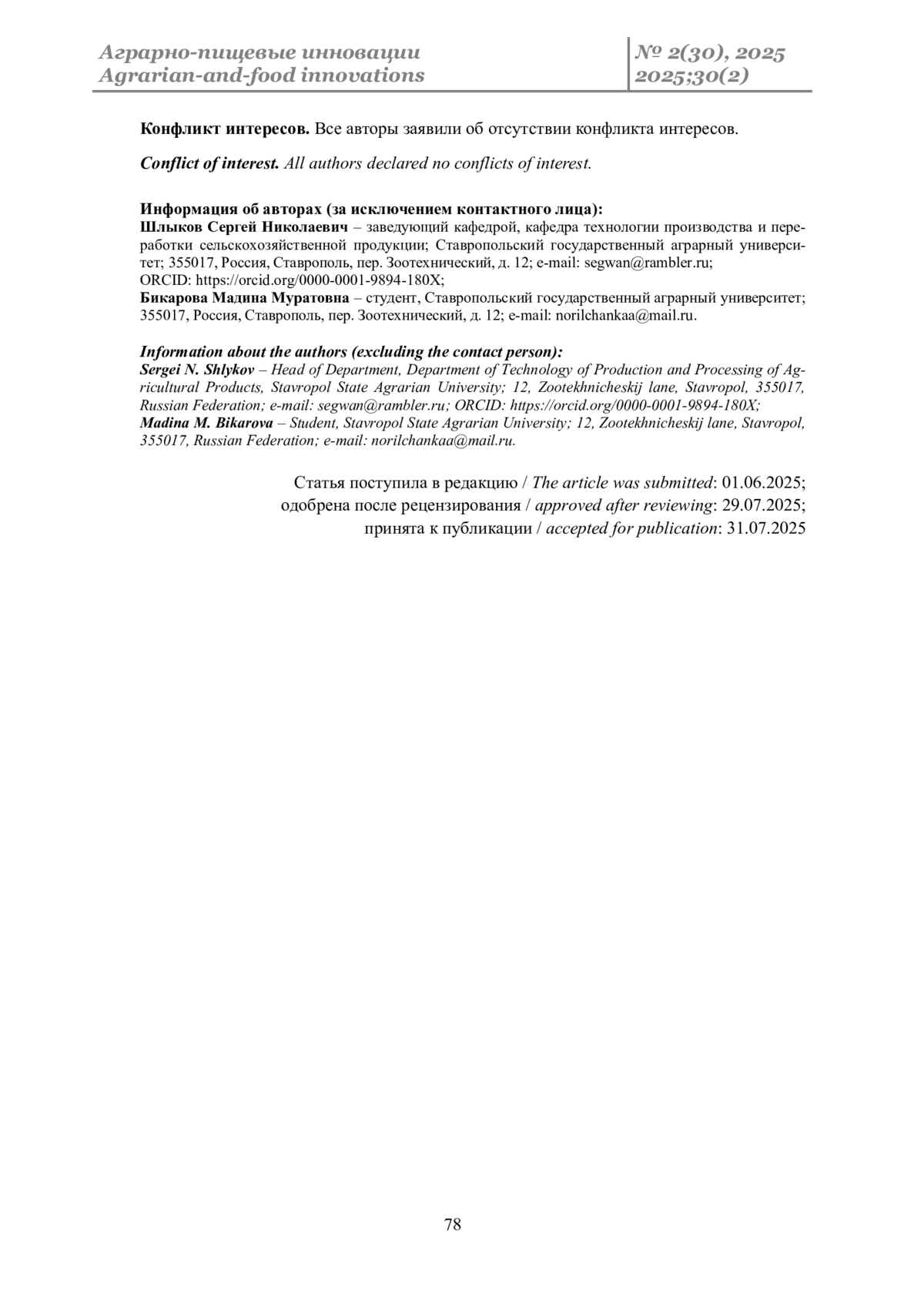 8. Елисеева Л.И., Степанов К.М., Гоголева П.А., Васильев С.С., Лосорова Ю.Е. Анализ использования вторичного мясного сырья в ресурсосберегающей переработке мяса в Якутии // Международный сельскохозяйственный журнал. 2022. Т. 65. № 6. С. 640-643. DOI: 10.55186/25876740_2022_65_6_640