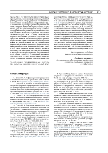 4. Гушул Ю. В. Смысловые взаимосвязи исторических исследований в научном пространстве Челябинского государственного института культуры (опыт информационно-аналитического исследования) // Вестник культуры и искусств. 2022. № 4. С. 23-43.