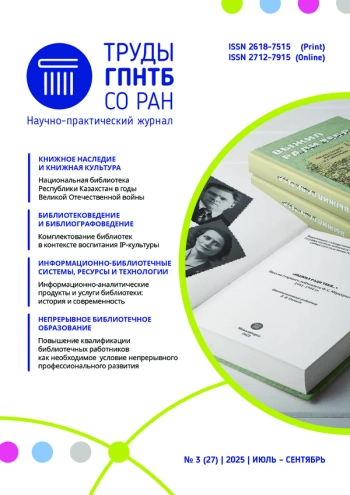 15. Артемьева Е. Б., Ершова Т. Н. Информационное обеспечение ученых и специалистов научных учреждений Сибири в меняющейся научно-образовательной среде // Труды ГПНТБ СО РАН. 2023. № 3. С. 29-38. https://doi.org/10.20913/2618-7515-2023-3-29-38