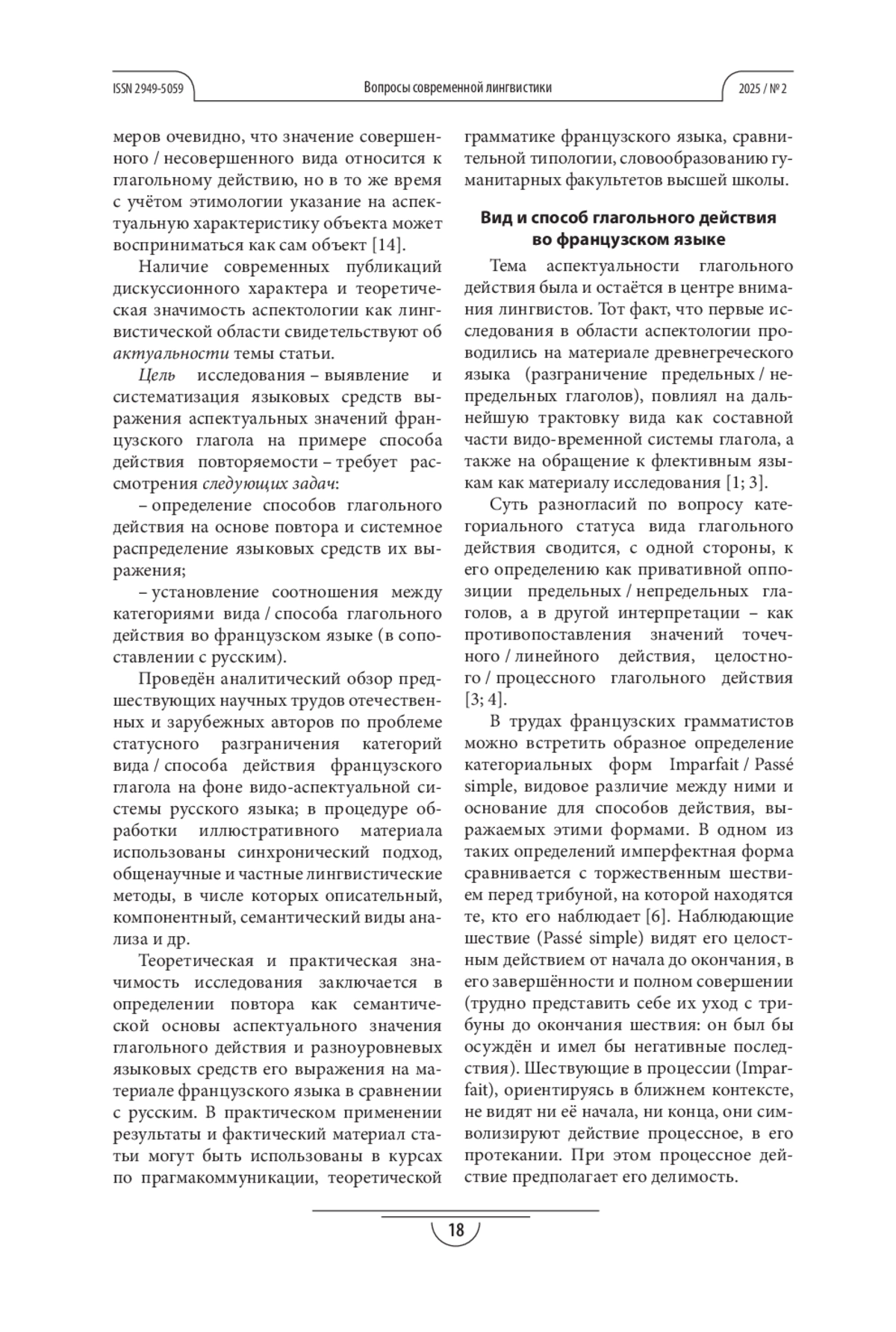 Вид (aspect) и способ действия (mode d’action) взаимосвязаны и относятся к сфере аспектологии, которая считается одной из актуальных как в области традиционной грамматики, так и в современных направлениях лингвистики.