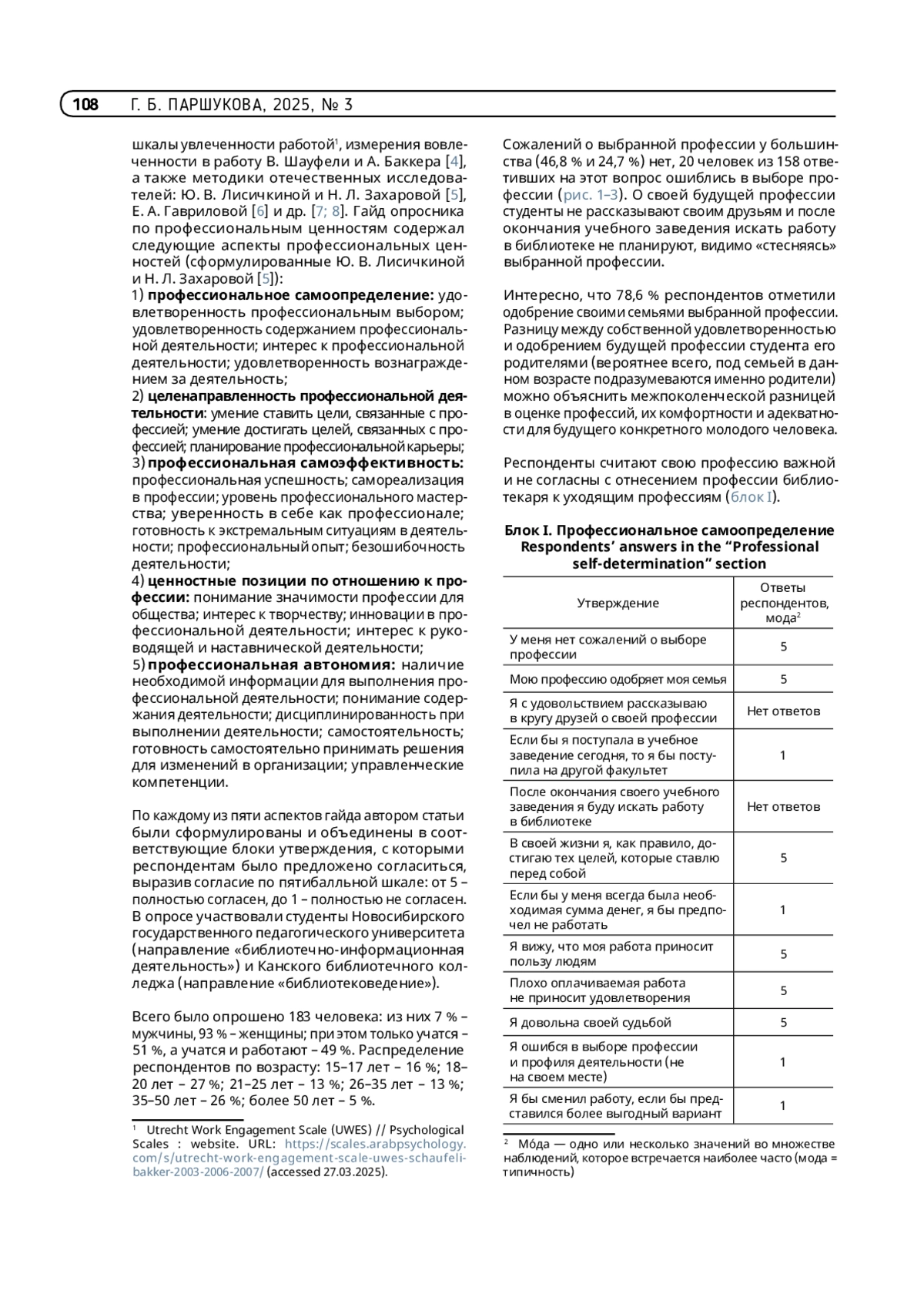 6. Гаврилова Е. А. Психодиагностическая методика «Тип и уровень профессиональной самореализации»: разработка, описание и психометрия // Вестник Тверского государственного университета. Серия: Педагогика и психология. 2015. № 3. С. 19-34.
