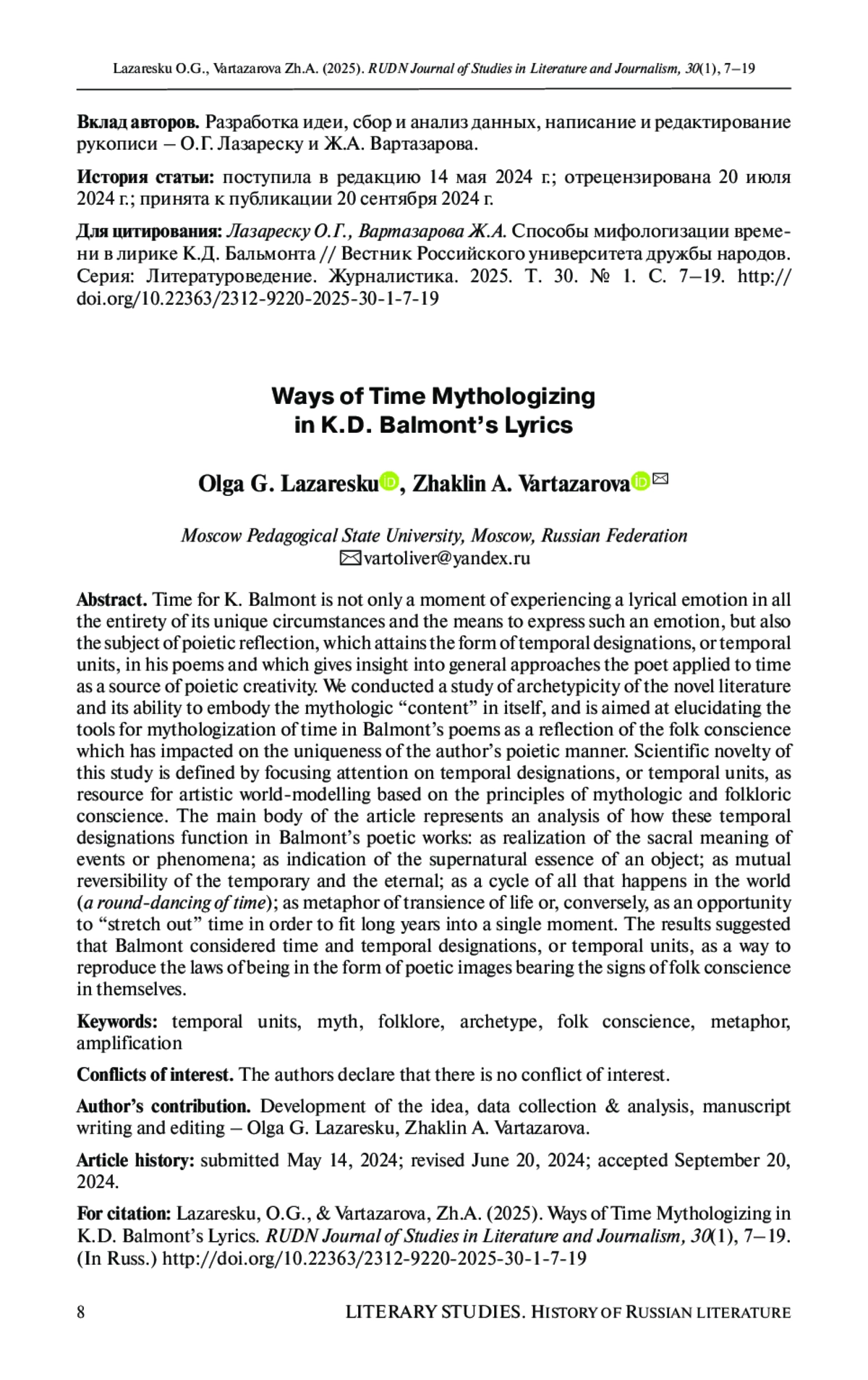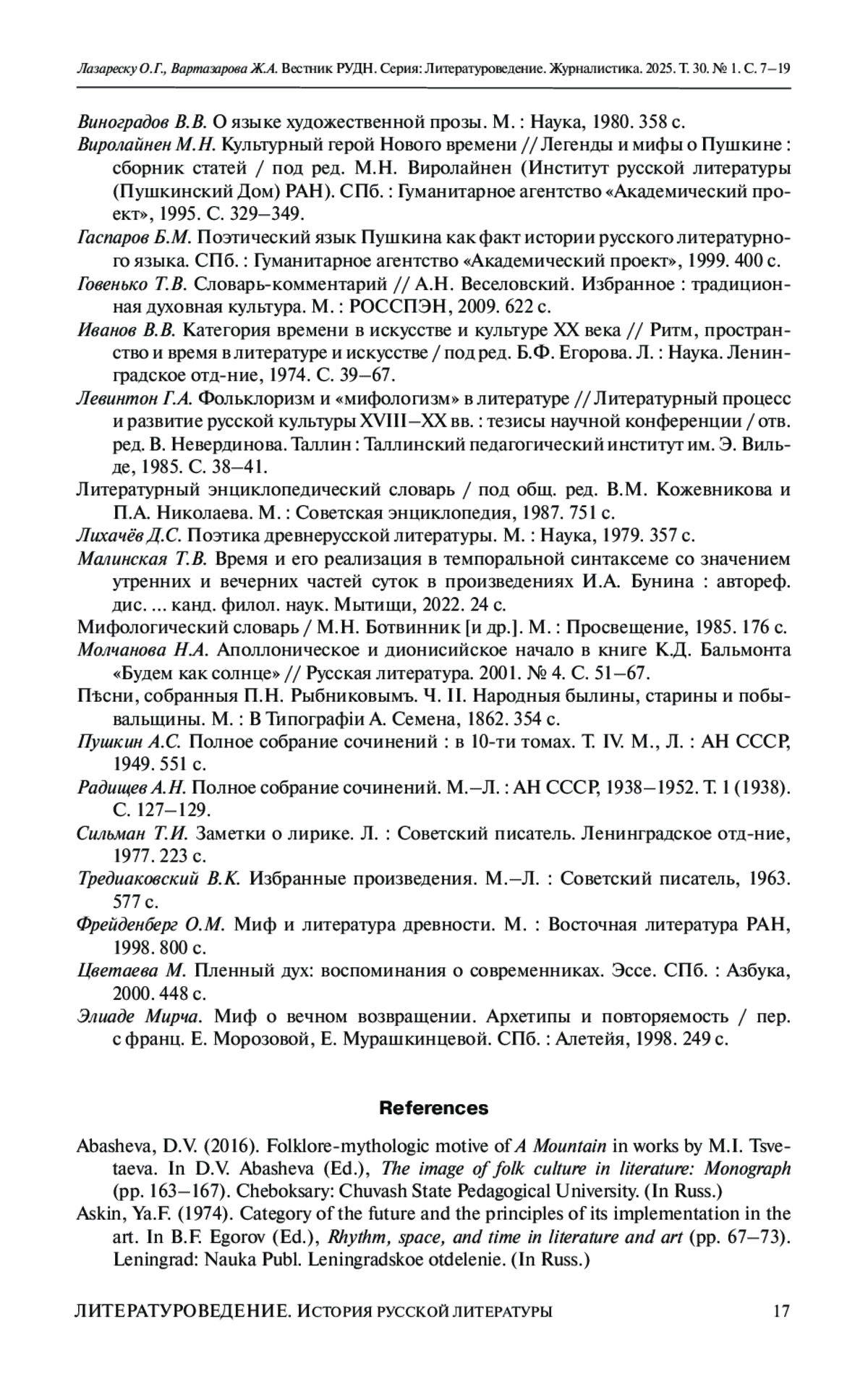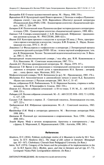 17. Малинская Т.В. Время и его реализация в темпоральной синтаксеме со значением утренних и вечерних частей суток в произведениях И.А. Бунина: автореф. дис.... канд. филол. наук. Мытищи, 2022. 24 с. EDN: KMDPJC