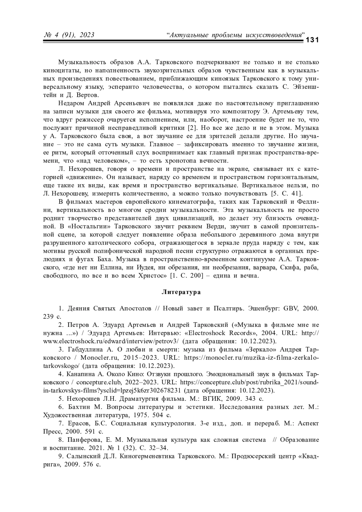 3. Габдуллина А. О любви и смерти: музыка из фильма “Зеркало” Андрея Тарковского / Monocler.ru, 2015-2023. URL: https://monocler.ru/muzika-iz-filma-zerkalo-tarkovskogo/(дата обращения: 10.12.2023).