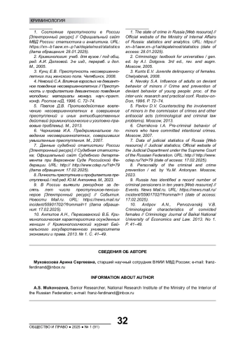 6. Черникова И.А. Предкриминальное поведение несовершеннолетних, совершивших умышленные преступления. М., 2007. EDN: QXLVIF