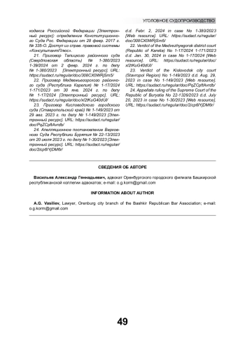 24. Апелляционное постановление Верховного Суда Республики Бурятия № 22-13/2023 от 20 июля 2023 г. по делу № 1-30/2023 [Электронный ресурс]. URL: https://sudact.ru/regular/doc/2icp6lYjDM6r.
