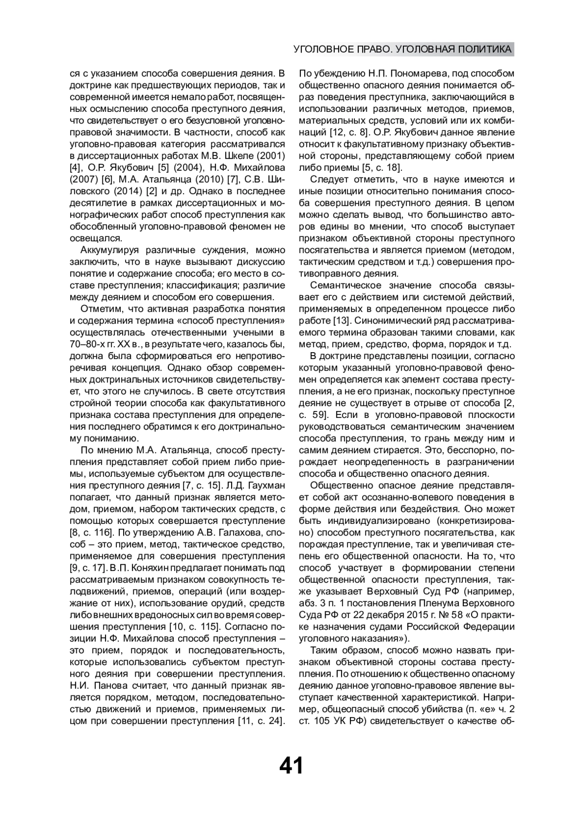 7. Атальянц М.А. Способ совершения преступления и его уголовно-правовое значение: дис…. канд. юрид. наук. М., 2010. EDN: OORZGY