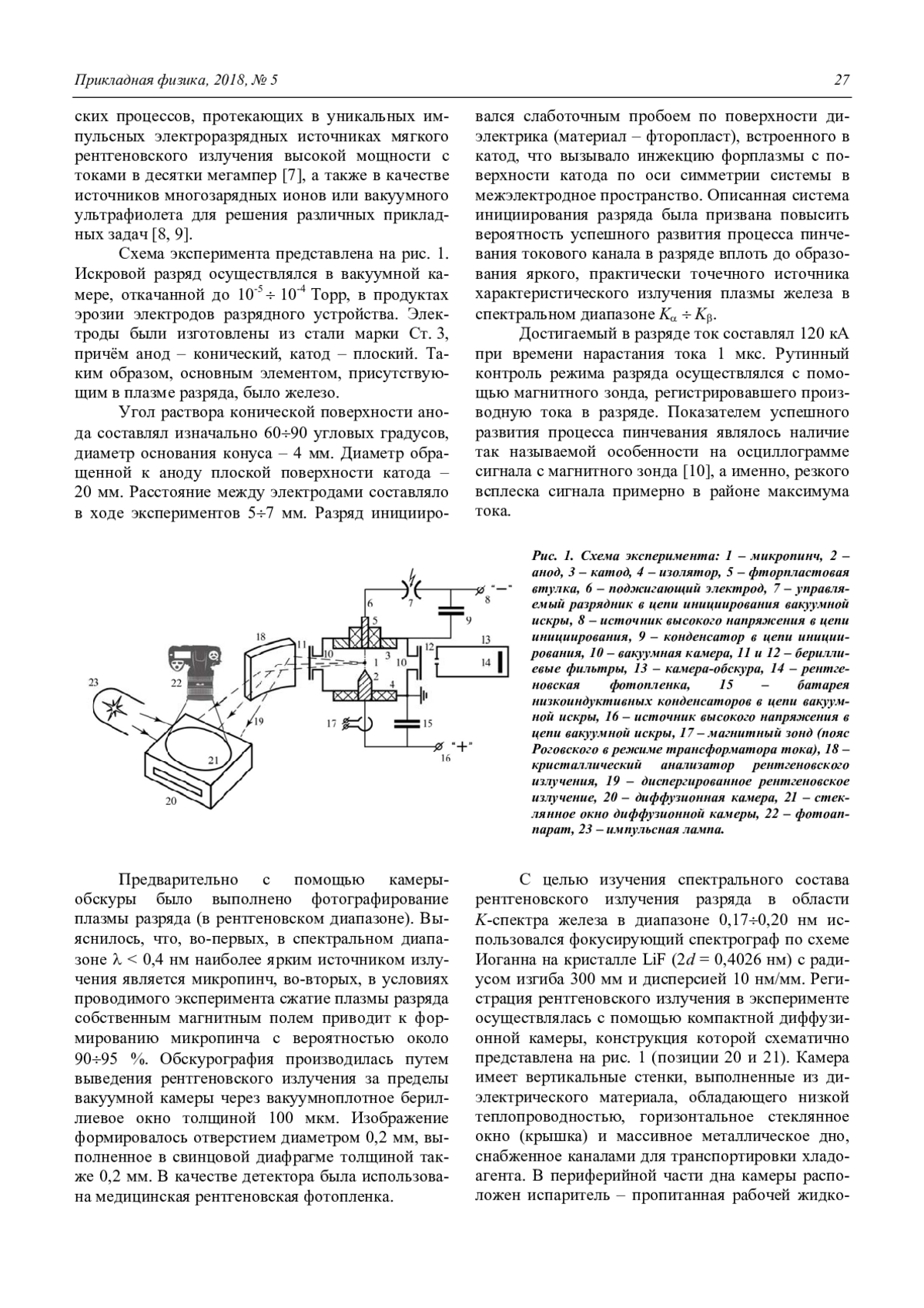 Статья: Одноимпульсная регистрация линейчатого рентгеновского спектра микропинчевого разряда (2018)