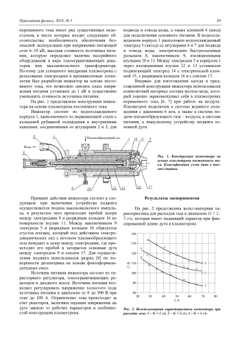 Кузнецов В. Е., Сафронов А. А., Васильева О. Б., Дудник Ю. Д., Ширяев В. Н. Инжектор плазмы на базе плазмотрона постоянного тока для низковольтного мощного плазмотрона переменного тока с рельсовыми электродами 38